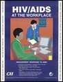 A man hands a piece of paper to another sitting at a computer in an office; a message about HIV/AIDS in the workplace; an AIDS prevention advertisement by the CII, the Confederation of Indian Industry programme on HIV/AIDS prevention and care. Colour lithograph by Amita P. Gupta, ca. 1997.