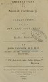 Observations on animal electricity : in explanation of the metallic operation of Doctor Perkins / by John Vaughan, M.P.M.S. ; fellow of the Medical Society of Delaware.