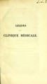 Leçons de clinique médicale, faites à l'Hôtel-Dieu de Paris / par le professeur A.F. Chomel ; recueillies et publiées sous ses yeux par J.L. Genest.