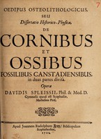 Oedipus osteolithologicus, seu dissertatio historico-physica, de cornibus et ossibus fossilibus Canstadiensibus, in duas partes divisa / [David Spleiss].