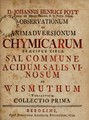 Observationum et animadversionum chymicarum praecipue circa sal commune, acidum salis vinosum et wismuthum versantium collectio prima. [Observationum ... praecipue zincum, boracem et pseudogalenam, tractantium collectio secunda] / [Johann Heinrich Pott].