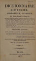 Nouveau dictionnaire historique-portatif, ou Histoire abrégée de tous les hommes qui se sont fait un Nom par des Talens, des Vertus, des Forfaits, des Erreurs, &c. &c., depuis le commencement du Monde jusqu'à nos jours : ouvrage dans lequel on expose sans flatterie et sans amertume, ce que les Ecrivains les plus impartiaux ont pensé sur le Génie, le Caractere & les Moeurs des hommes célebres dans tous les Genres; avec des tables chronologiques pour reduire en corps d'histoire les articles repandus dans le dictionnaire. / Par une Société de Gens de Lettres.