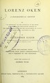 Lorenz Oken : a biographical sketch or In memoriam of the centenary of his birth : read before the fifty-second meeting of the German Association for the Advancement of Science at Baden-Baden, September 20, 1879 / by Alexander Ecker, with explanatory notes, selections from Oken's correspondence and a portrait of the Professor ; from the German by Alfred Tulk.
