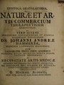 Epistola gratulatoria qua naturae et artis commercium therapeuticum demonstrat et ... / [Michael Alberti].