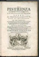Di pestilenza commune a bruti, et di contaggio mortale dell'huomo. Et appresso un dialogo, attinente alla missione di sangue col taglio della vena in ogni genere de mali / [Troilo Lancetta].
