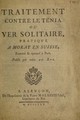 Traitement contre le ténia ou ver solitaire, pratique, à Morat en Suisse [by Mme Nouffer], examiné & éprouvé à Paris / [Joseph-Marie-François de Lassone].