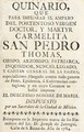 Quinario, que para implorar el amparo del portentoso virgen, doctor y martir carmelita San Pedro Tomas ... : especialisimo abogado contra todo genero de peste, epidemia, ô enfermedad contagiosa ... / dispuesto por un sacerdote de la ciudad de México.