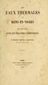 Des eaux thermales de Bains-en-Vosges : et leur usage dans les maladies chroniques.