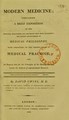 Modern medicine : containing a brief exposition of the principal discoveries and doctrines that have occasioned the recent advancement of medical philosophy : with strictures on the present state of medical practice, and an enquiry how far the principles of the healing art may become the subjects of unprofessional research / David Uwins.
