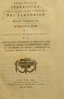 Della facoltà febbrifuga e delle altre virtù medicinali del santonico, Artemisia caerulescens Linn. Discorsi due / [Salvatore Mandruzzato].