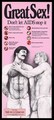 Two men with moustaches feel each others bodies with a list of unsafe and safe sex practices; advertisement by the Victorian AIDS Council. Colour lithograph.