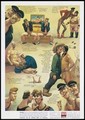 Numerous gay couples wearing condoms and commenting on their benefits in AIDS prevention. Colour lithograph for the Österreichische AIDS-Hilfe.