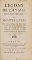 Leçons de chymie de l'Université de Montpellier. Où l'on explique les prépartions avec la meilleure physique, & l'usage de chaque reméde, fondé sur la meilleure pratique de médecine / [Antoine Fizes].