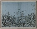 A fierce battle between the supporters of John Brown (Bruno), in favour of treatment with stimulants, and those of F.J.V. Broussais, in favour of bloodletting. Pen drawing.