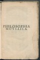 Philosophia Moysaica. In qua sapientia et scientia creationis et creaturarum sacra veréque Christiana (vt pote cujus basis sive fundamentum est unicus ille Lapis Angularis Iesus Christus) ad amussim et enucleaté explicatur / Authore Rob. Flud, alias De Fluctibus.