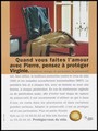 A woman's pair of jeans and a man's pair of trousers on a chair with a message addressed to Virginie: "When you make love with Pierre, think about protection ... to avoid spreading sexually transmitted diseases and HIV"; advertisement for the SIDA Info Service by the Ministère de la Santé Publique et de l'Assurance Maladie. Colour lithograph.