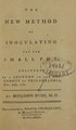 The new method of inoculating for the small pox : delivered in a lecture in the University of Philadelphia, Feb. 20th, 1781 / by Benjamin Rush, M.D.
