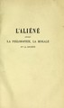 L'aliéné devant la philosophie, la morale et la société / par Albert Lemoine.