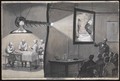A periscope being used above an operation which is projected onto a lantern screen for a lecture in the adjoining room. Gouache painting by W.R. Seton.