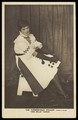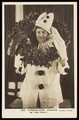 Dan Godfrey dressed in Pierrette costume, performing for "The Timbertown Follies" at a prisoner of war camp in Groningen. Photographic postcard, 191-.