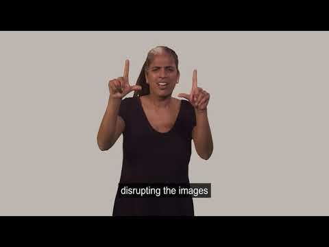 He is the only person of colour. In all the other films the people are white. Words that you might hear in a yoga class such as: “bring your attention to” and “breathe”, are edited in with others such as “fetishisation”, “saffronisation”, “commercialisation”, around the frame of the film, disrupting the images and making reference to the colonial gaze inherent in the footage.