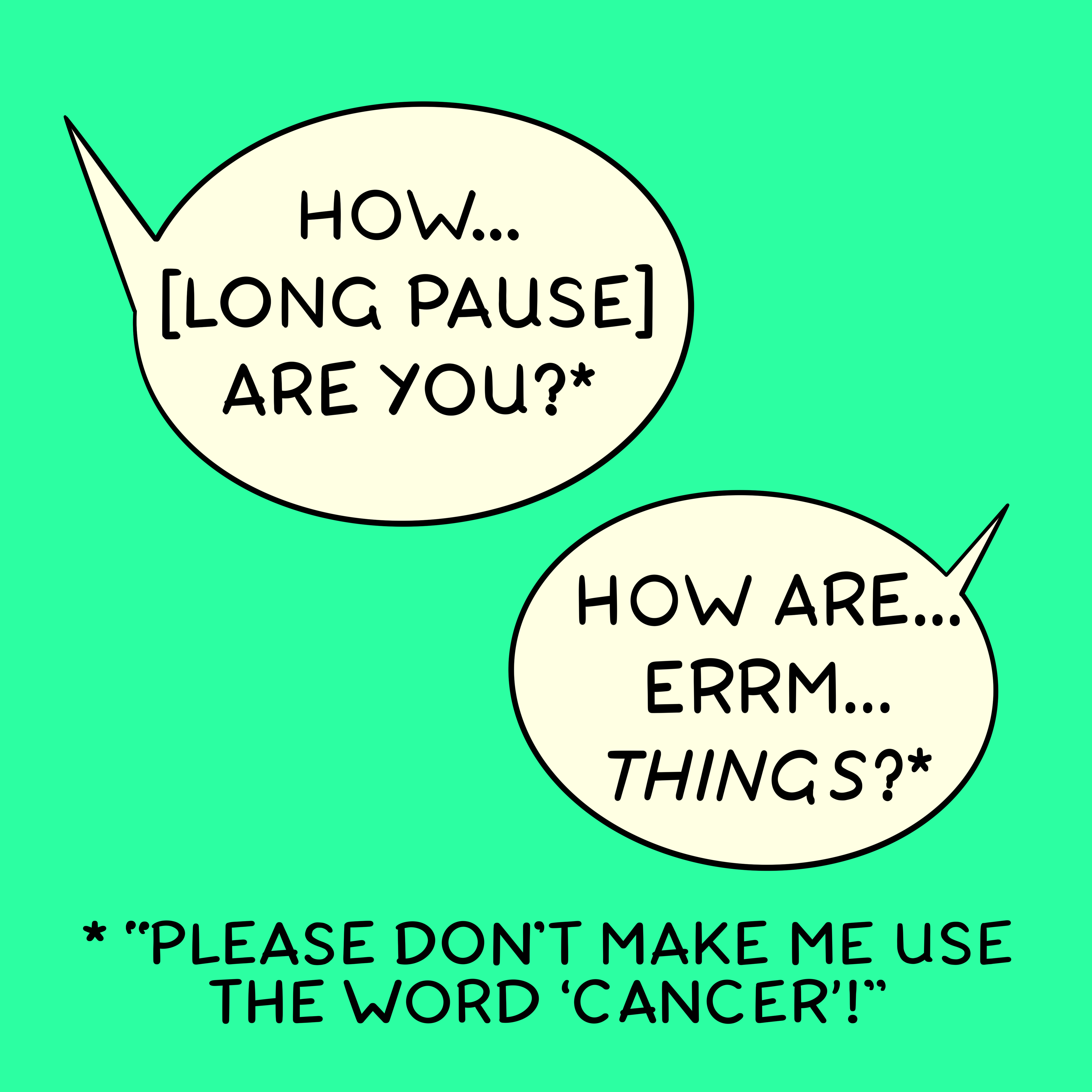 It can be OK to ask a direct question… sometimes skirting around the topic of cancer can make it the elephant in the room that hangs around awkwardly.