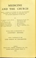 Medicine and the church : being a series of studies on the relationship between the practice of medicine and the church's ministry to the sick / by Sir Clifford Allbut [and others] ; edited with an introduction by Geoffrey Rhodes ; with a foreword by the Lord Bishop of Winchester.