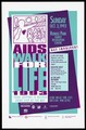 Red ribbons spelling the words 'AIDS' with details of the AIDS Walk for Life on Sunday October 1st 1995 at Kinsmen Park and Fieldhouse, Edmonton, Canada. Colour lithograph.
