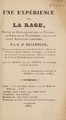 Une expérience sur la rage : suive de propositions sur la nature, le siège et le traitement curatif ... Avec un rapport des plus curieux de l'Académie Royale de Médecine / [G.D. Bellenger].