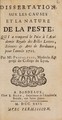 Dissertation sur les causes et la nature de la peste, : qui a remporté le prix à l'Academie Royale des Belles Lettres, Sciences & Arts de Bordeaux, pour l'année 1722. / Par Mr. Pestalozzi.