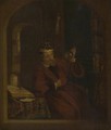 A physician examining urine. Oil painting after Adriaen van Ostade.