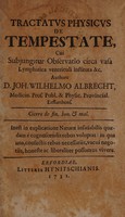 - Tractatus physicus de tempestate, cui subjungitur observatio circa vasa lymphatica ventriculi instituta &c.Albrecht, Jo. Wilh., 1703-1736Date: 1731