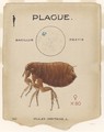 Spores of Bacillus pestis which caused the plague and its vector the human flea (Pulex irritans). Coloured drawing by A.J.E. Terzi.