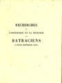 Recherches sur l’ostéologie et la myologie des batraciens à leurs différens âges; présentées à l’Académie royale des sciences ... / par Ant. Dugès.