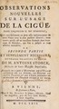 Observations nouvelles sur l'usage de la cigüe ... : ou seconde partie et supplément nécessaire; ouvrages traduits du latin ... Auxquels on a joint l'histoire de l'usage interne de la cigue.