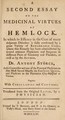 A second essay on the medicinal virtues of hemlock. In which its efficacy in the cure of many desperate disorders is fully confirmed / Together with corollaries and cautions. Translated from the original Latin, by a physician.
