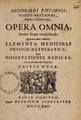 Opera omnia, duobus tomis comprehensa: quorum unus continet, Elementa medicinae physico-mathematica: alter Dissertationes medicas, cum quibusdam aliis opusculis / Archibaldi Pitcairnii.