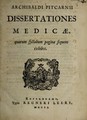 Archibaldi Pitcarnii Dissertationes medicae, quarum syllabum pagina sequens exhibet.