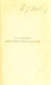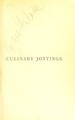 Culinary jottings : a treatise in thirty chapters on reformed cookery for Anglo-Indian exiles, based upon modern English, and continental principles, with thirty menus for little dinners worked out in detail, and an essay on our kitchens in India / by "Wyvern".