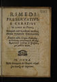Rimedi preservativi, e curativi in tempo di peste / Tradotti dalla lingua francese.