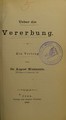 Ueber die Vererbung : ein Vortrag / von August Weismann.