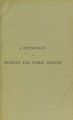 A dictionary of hygiène and public health : comprising sanitary chemistry, engineering, and legislation, the dietetic value of foods, and the detection of adulterations, on the plan of the "Dictionnaire d'hygiène publique" of Professor Ambroise Tardieu / by Alexander Wynter Blyth.