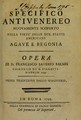 Specifico antivenereo nuovamente scoperto nella virtù delle due piante americane agave e begonia ... / Prima traduzione dalla spagnuolo.
