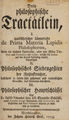 Drey philosophische Tractätlein : I. Ausführlicher Unterricht de prima materia lapidis philosophorum [Philosophisches Lict und Schatten] II. Philosophisches Siebengestirn der Rosenkreutzer [Pleiades philosophicae Rosianae] III. Philosophischer Hauptschlüssel über Fr. Basilii Valentini seine XII chymische Schlüssel, nebst Francisci Clingii Anweisung und Explication.