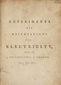 Experiments and observations on electricity, made in Philadelphia ... To which are added, letters and papers on philosophical subjects / [Ed. by P. Collinson].