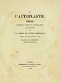 De l'autoplastie : thèse présentée et soutenue le 19 Février 1836 : au concours pour une chaire de clinique chirurgicale vacante a la Faculté de Médecine de Paris / par Ph. Fréd. Blandin.