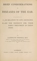 Brief considerations on diseases of the ear. 1, In relation to life insurance; 2, On the necessity for their early treatment in childhood / by Llewelyn Thomas.