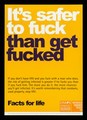 It's safer to fuck than get fucked : if you don't have HIV and you fuck with a man who does, the risk of getting infected is greater if he fucks you than if you fuck him ... / CHAPS, Terrence Higgins Trust.
