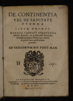 De continentia vel de sanitate tvenda. Liber primus ... / Marsilii Cagnati Veronensis.