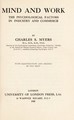 Mind and work, the psychologial factors in industry and commerce / by Charles S. Myers.